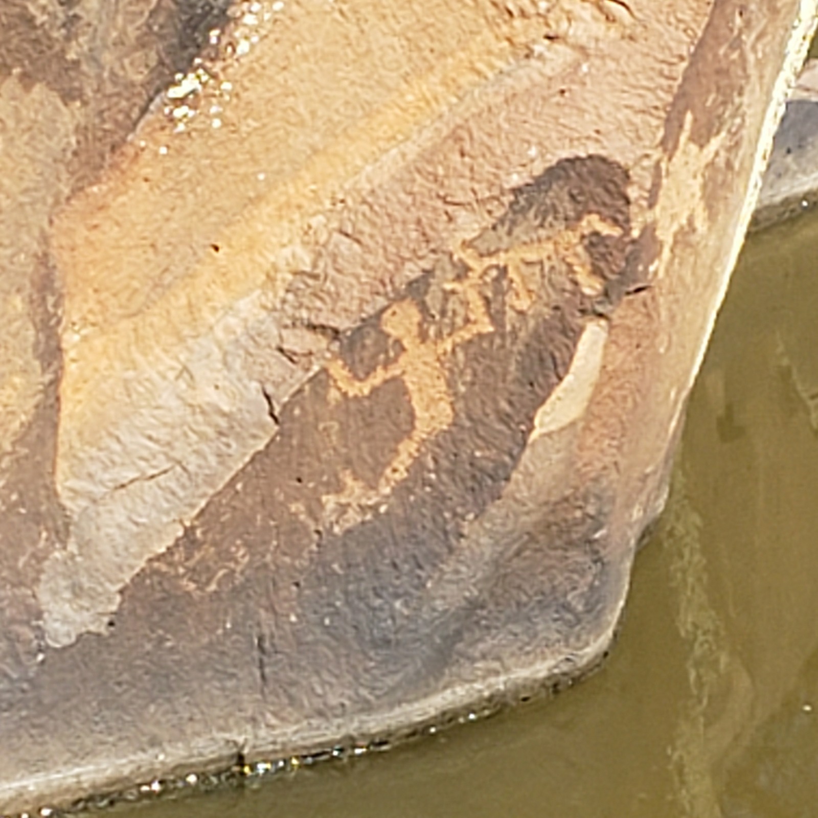 Petroglyphs are rock carvings (rock paintings are called pictographs) made by pecking directly on the rock surface using a stone chisel and a hammerstone. When the desert varnish (or patina) on the surface of the rock was chipped off, the lighter rock underneath was exposed, creating the petroglyph.